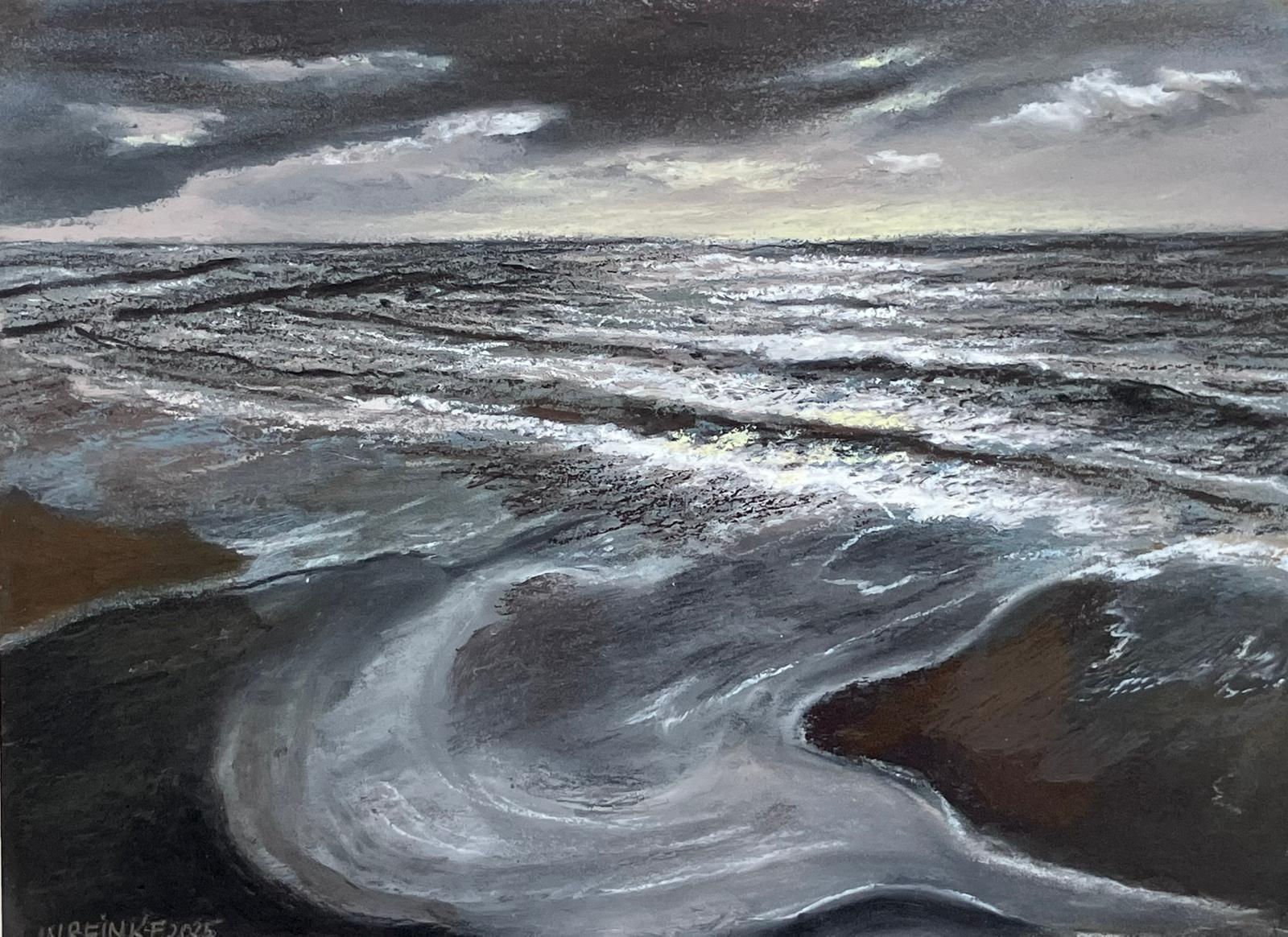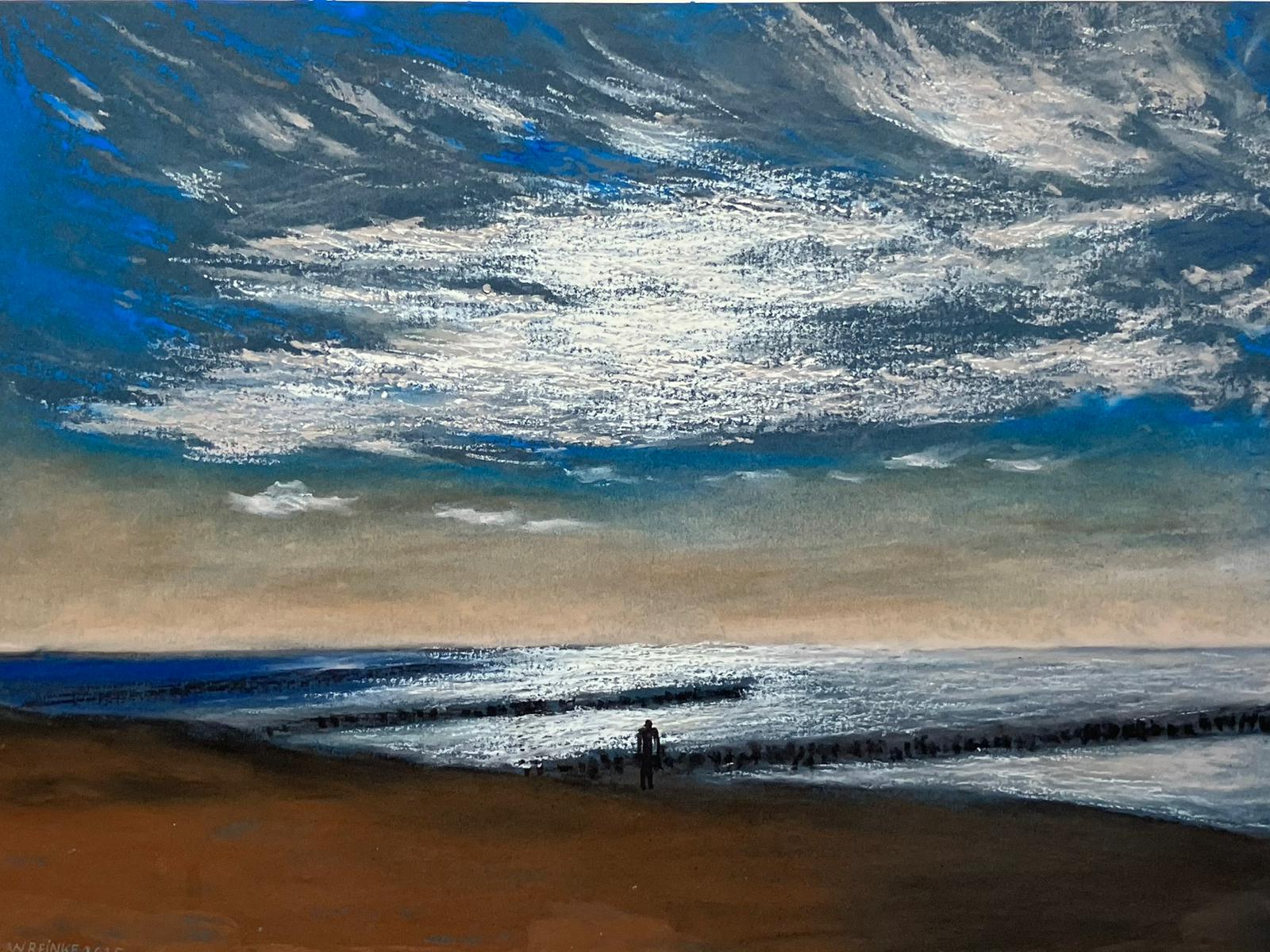Wolfgang Reinkes Werke strahlen Dynamik und Kraft, aber auch meditative Stille sowie die Melancholie des Werdens und Vergehens aus. Seine Zeichnungen geben keinen konkreten Ort wieder, sondern das emotionale Erlebnis des Künstlers beim Anblick von Strand und Meer. Oft verstärken Lichtreflexionen und unaufdringliche Farbakzente die Atmosphäre und Eindringlichkeit seiner Arbeiten. Während Reinkes Zeichnungen ganz der Anschauung und Emotion folgen, beschäftigt er sich in den geometrisch-linearen Arbeiten mit der psychischen Wirkung der Raumdarstellung auf den Betrachter. Mit einer raffinierten Komposition von hell- und dunkelgrauen Flächen schafft er irreale Perspektiven und labyrinthische Irrwege, die dennoch eine scheinbare Realität suggerieren.