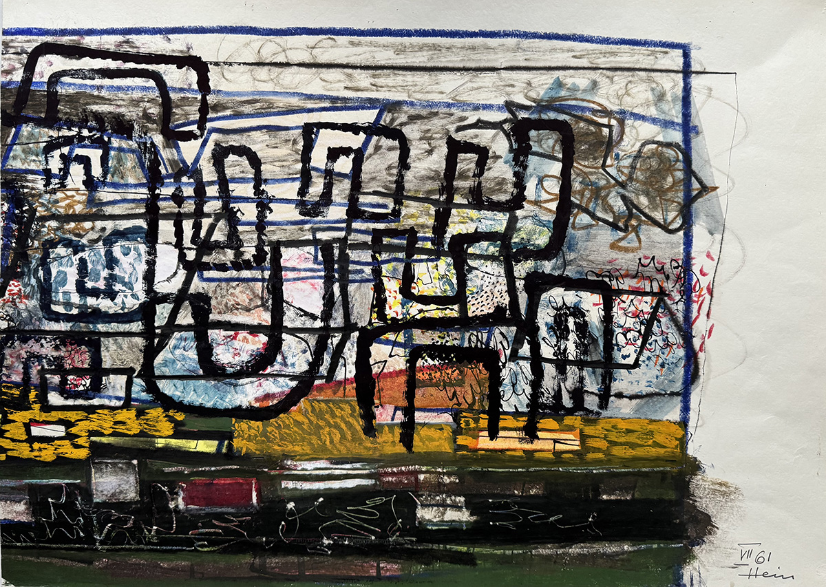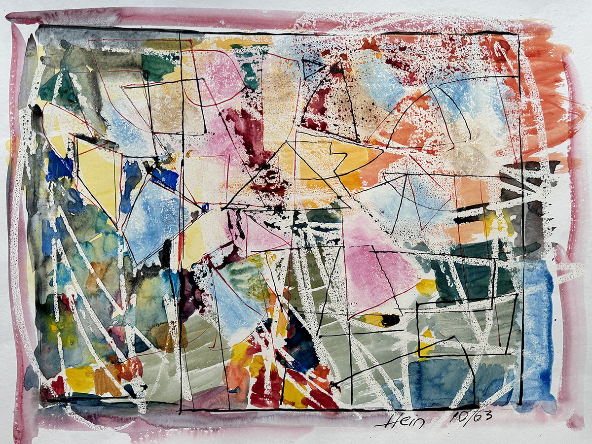 In the mid-1950s the artist dissolved figuration in his work. Forms inspired by Cubism gradually developed into abstract structures of geometric lines that frame areas of color. Hein referred to these structures as “imaginary substance.” Although the placements in his paintings appear spontaneous, they follow a deliberate understanding of color and form through which the artist imbues everything with an individual sense of meaning.