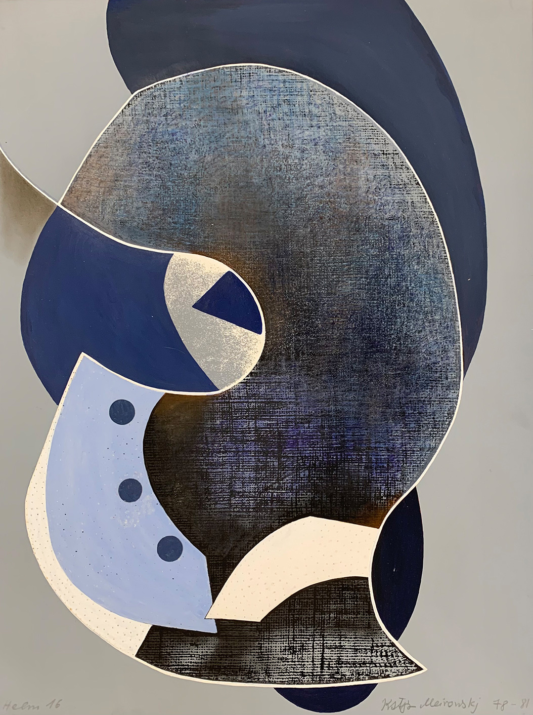 KATJA MEIROWSKY (1920-2012) floh 1942 nach Polen. 1945 kehrte sie nach Berlin zurück und gehörte bald zum Künstlerkreis um die Galerie Rosen und die Galerie Bremer, die avantgardistische Kunst des 20. Jahrhunderts ausstellten. Zusammen mit Alexander Camaro, ihrem späteren Ehemann Carl Meirowsky, Jeanne Mammen, Werner Heldt und weiteren Künstlern zählte sie 1949 zu den Gründungsmitgliedern des legendären Kabaretts „Die Badewanne“. Ab 1953 lebte die Künstlerin auf Ibiza. Meirowskys Malerkollege und Freund Werner Heldt betonte 1951 ihre besondere Stellung unter den malenden und zeichnenden Frauen in Deutschland. Er hob dabei die herausragenden Kompositionen ihrer Bilder sowie deren besonderes Kolorit hervor und nannte das Traumelement „eine der stärksten Seiten“ der Künstlerin. Auf die Verbundenheit beider Künstlerfreunde verweist „Das große Atelier“ aus dem Jahr 1949.