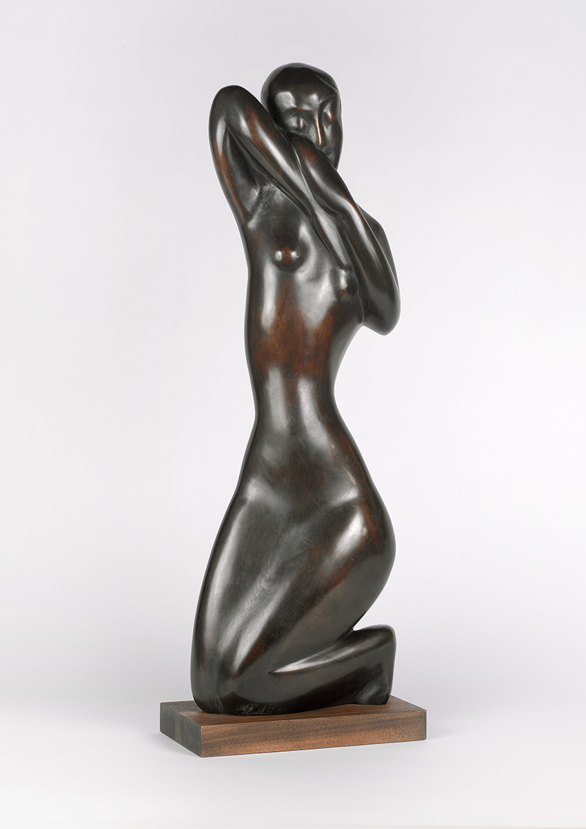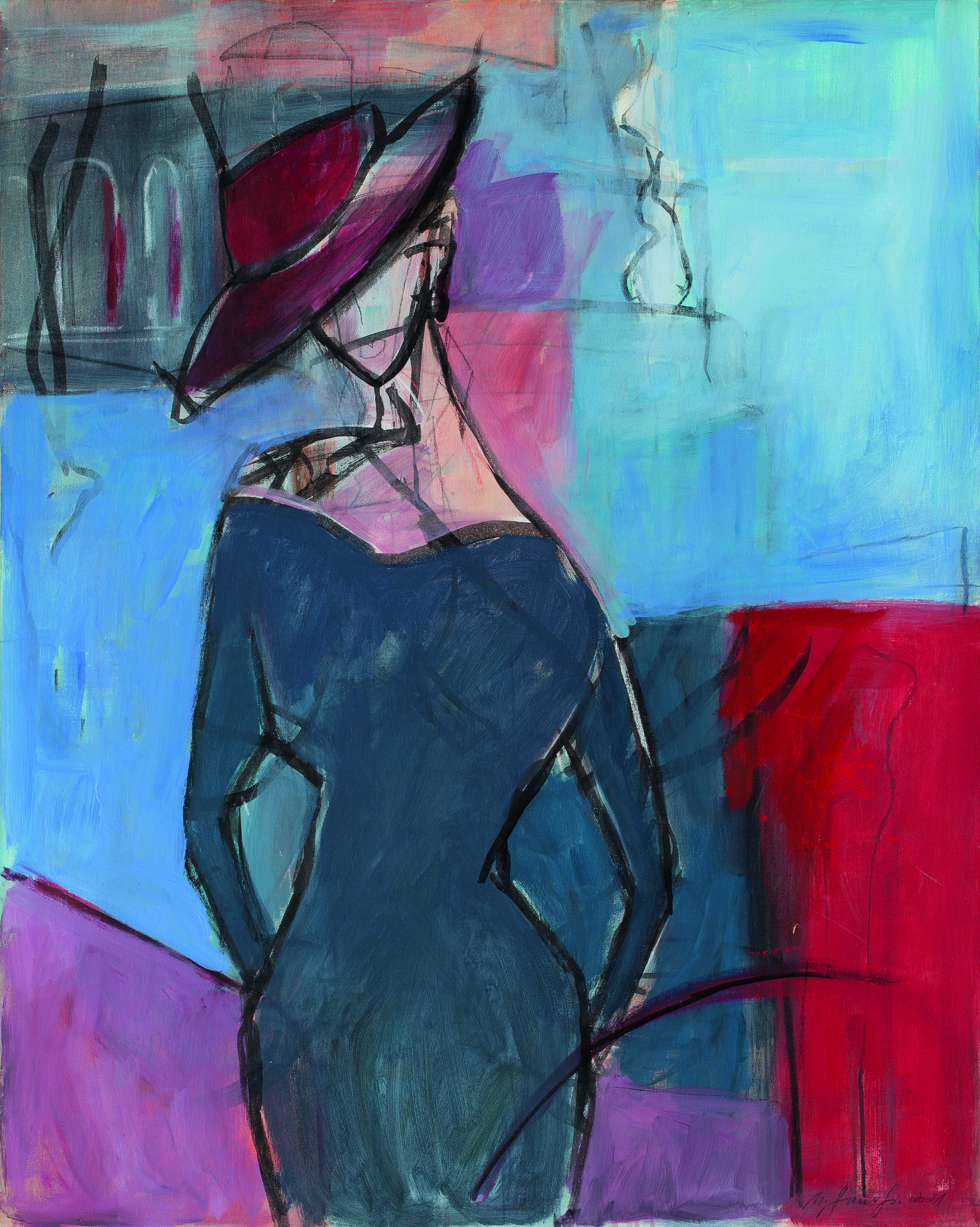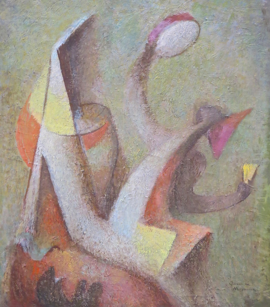 Einer der prominentesten Namen dabei ist Lotte Laserstein (1898-1993). Von ihr ist in der Ausstellung das Werk „Frau mit spitzem Hut“ aus der Zeit um 1940 zu sehen. Die vielbeachtete Ausstellung „Lotte Laserstein. Von Angesicht zu Angesicht“ war 2018/19 im Städel in Frankfurt zu sehen. Mit Arbeiten von Thilo Maatsch, Albert Hennig, Karl Peter Röhl, Fritz Kuhr und Ida Kerkovius sind auch Künstlerinen und Künstler vertreten, die am Bauhaus studierten, lehrten oder hospitierten. Ein besonderer Blickfang sind die Skulpturen „Kniende“ und „Aurora“ von Marg Moll (1884-1977). Sie gehört zu der ersten Generation der freischaffenden Bildhauerinnen. Ihre ersten Skulpturen gestaltete sie in Paris unter Anleitung von Henri Matisse – einer der bedeutendsten Künstler der Klassischen Moderne. Marg Moll blieb seine einzige deutsche Bildhauer-Schülerin. Auch die sich in Wiederentdeckung befindende Berliner Künstlerin Jeanne Mammen (1890-1976) ist mit dem großformatigen Bild „Neapolitanisches Kindermädchen mit Federball spielendem Kind“ vertreten. Das im Jahr 1947 entstandene Werk trägt Mammens unverwechselbare Handschrift. Während des 2. Weltkrieges hat sie den Mut künstlerisch weiterzuarbeiten und drückt Ihre Protesthaltung in einer immer stärker abstrahierten kubistischen Malweise aus, bei der sie sich von Picasso und Juan Gris inspirieren lässt. Das in der Ausstellung präsentierte Ölgemälde ist ein Zeitzeugnis dieser Schaffensperiode. In den Jahren 2017/18 ehrt die Berlinische Galerie Jeanne Mammen mit einer großen musealen Retrospektive.