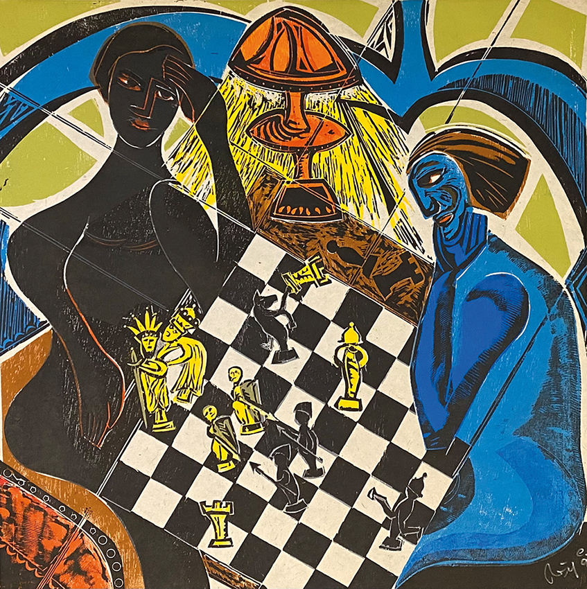 Wilfried Reiff (*1954), der im baden-württembergischen Metzingen lebt und arbeitet, ist ein Meister auf dem Gebiet des Holzschnitts. Beobachtungen im Alltag seiner Umgebung, Reiseeindrücke in fremden Ländern sowie Kunst und Literatur liefern ihm die Motive für seine druckgrafischen Arbeiten, deren Bildsprache in der Tradition des Expressionismus steht. Auf seinen oft farbenreichen Blättern entfaltet er erzählerische bis lyrische Bildwelten, in welchen häufig der Mensch mit seinen Charakterzügen, Sehnsüchten und Fehlbarkeiten im Mittelpunkt steht. In „Bistro“ und „Poker“ nimmt der Künstler die Farbe bewusst zurück, um die Intensität der spannungsvollen Atmosphäre zu betonen.