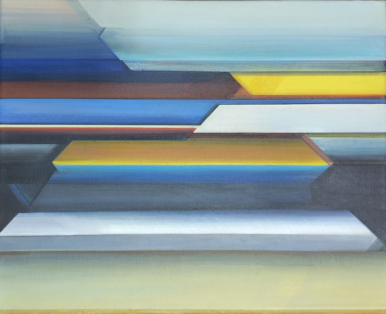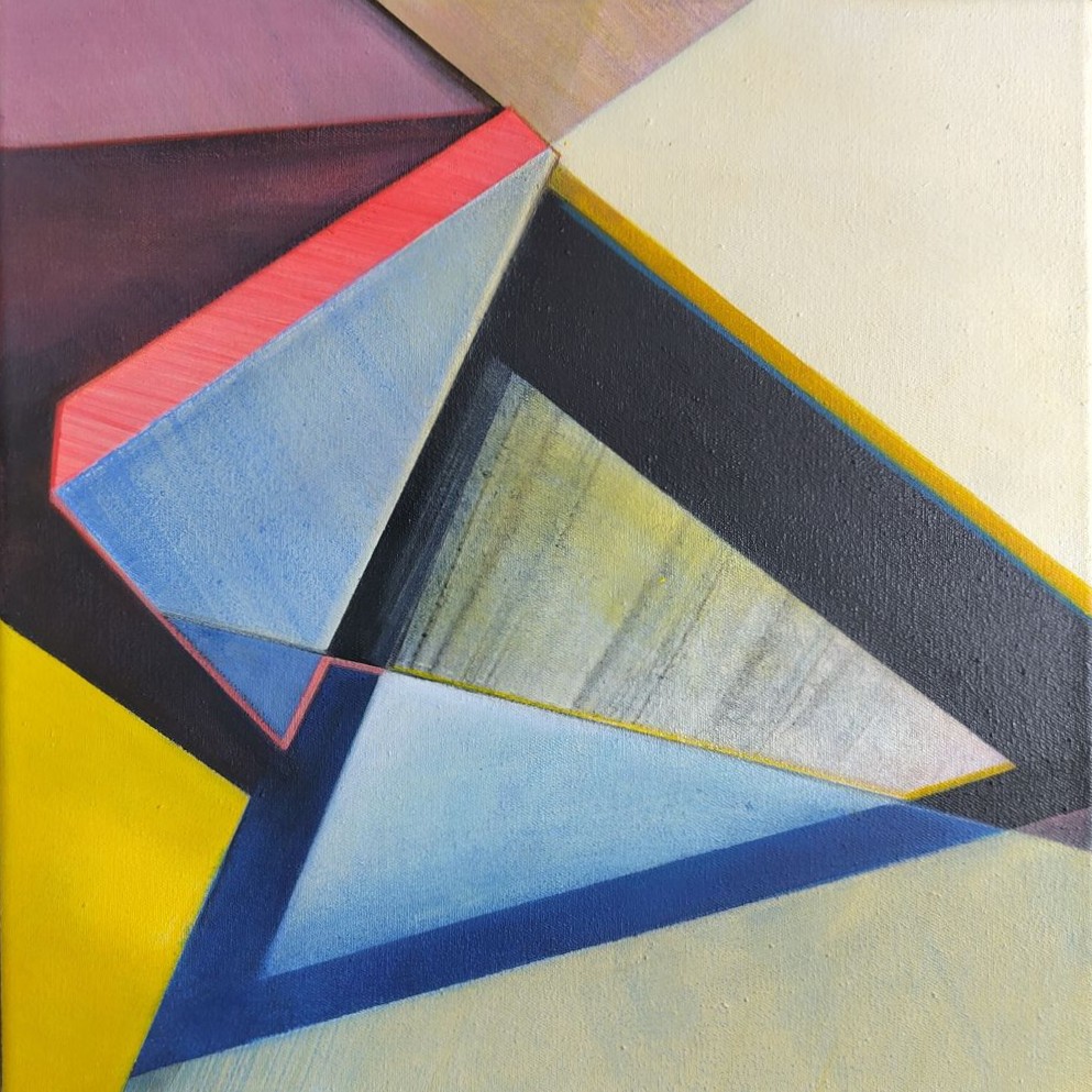 Ines Doleschal beschäftigt sich in ihrer Kunst vor allem mit der städtischen Architektur. Indem sie fotografisch oder zeichnerisch festgehaltene Gebäude dekonstruiert und neu zusammensetzt, ergeben sich farbintensive Malereien und Collagen, die – zwischen Zwei- und Dreidimensionalität changierend – ebenso kühne wie präzise Raumstrukturen und Architekturdetails zeigen. Das Schaffen der Künstlerin wird maßgeblich von ihrem Interesse an den Farb- und Formkompositionen des Bauhauses beeinflusst. Die Serie „Bauhaus, weiblich“ widmete sie den Weberinnen am Bauhaus, wie Gunta Stölzl, Otti Berger oder Friedl Dicker.