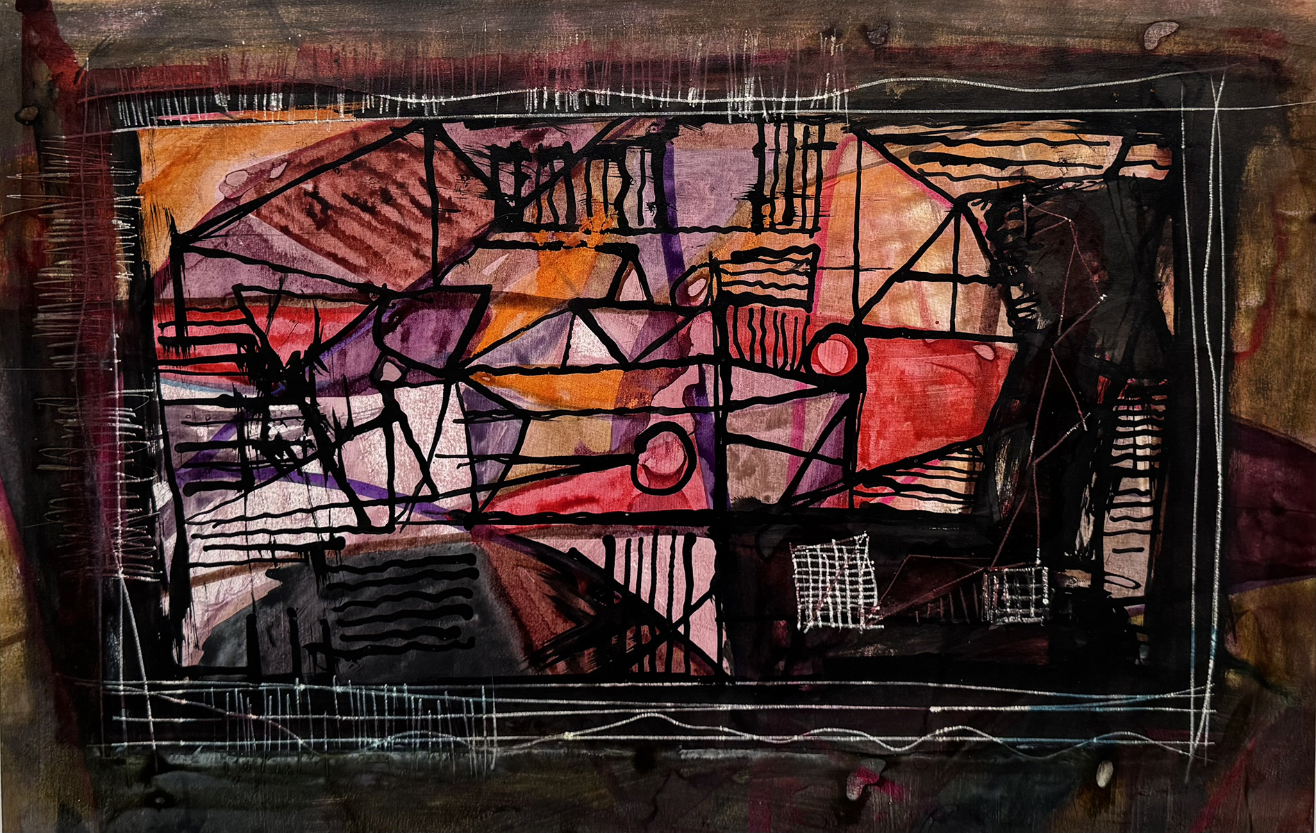 In the mid-1950s the artist dissolved figuration in his work. Forms inspired by Cubism gradually developed into abstract structures of geometric lines that frame areas of color. Hein referred to these structures as “imaginary substance.” Although the placements in his paintings appear spontaneous, they follow a deliberate understanding of color and form through which the artist imbues everything with an individual sense of meaning.