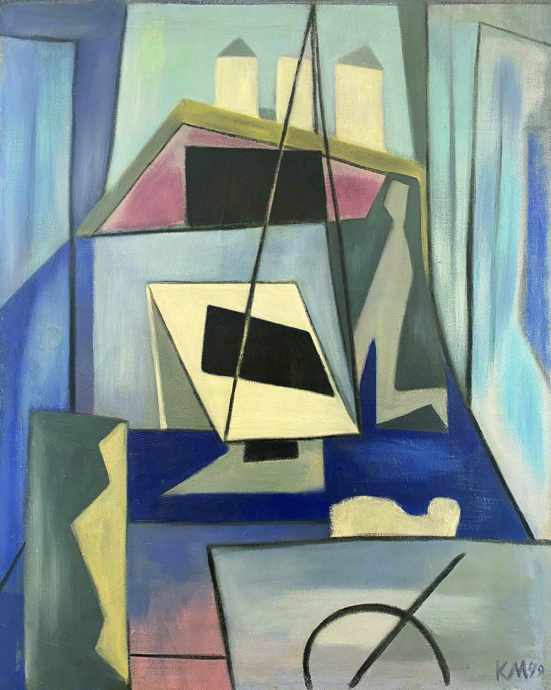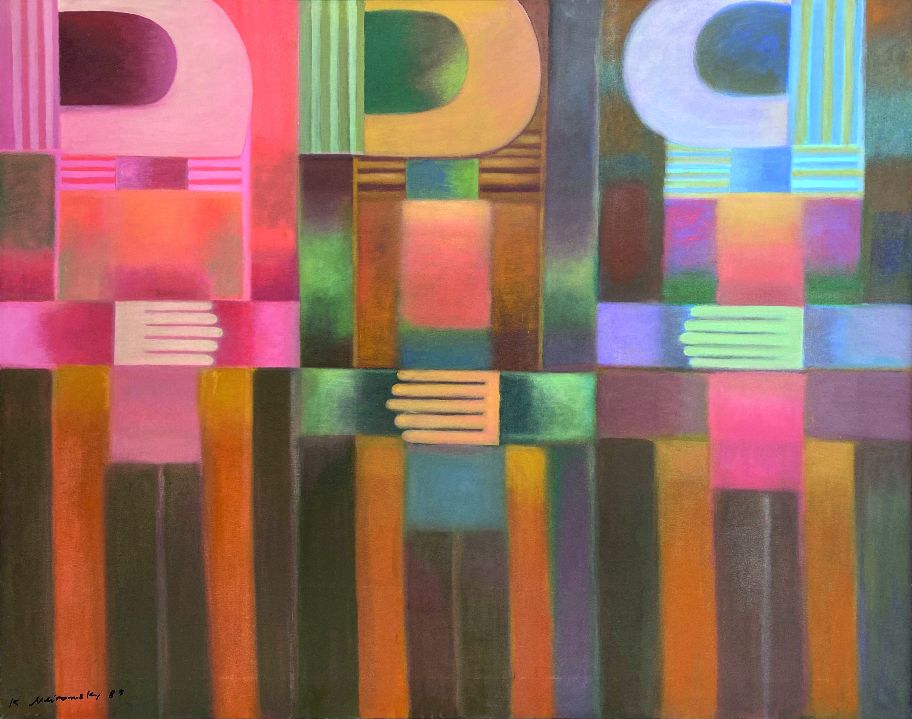 Nach ihren politischen und künstlerischen Erfahrungen in der Nachkriegszeit wählte Katja Meirowsky 1953 Ibiza zu ihrem neuen Lebensmittelpunkt. Hier öffnete sich ihr eine faszinierende Welt an neuen Motiven und Inspirationen. Die vielfältigen kreativen Impulse, die sie auf der Insel empfing, werden in Werken wie „Besinnung“ und „Jongleur“ deutlich. Die Grenze zwischen Abstraktion und Gegenständlichkeit verläuft in diesen Bildern fließend und sie vermögen trotz gedämpfter Farbigkeit zu leuchten.
