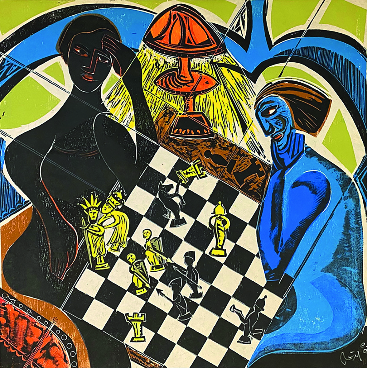 Wilfried Reiff (*1954), der im baden-württembergischen Metzingen lebt und arbeitet, ist ein Meister auf dem Gebiet des Holzschnitts. Beobachtungen im Alltag seiner Umgebung, Reiseeindrücke in fremden Ländern sowie Kunst und Literatur liefern ihm die Motive für seine druckgrafischen Arbeiten, deren Bildsprache in der Tradition des Expressionismus steht. Auf seinen oft farbenreichen Blättern entfaltet er erzählerische bis lyrische Bildwelten, in welchen häufig der Mensch mit seinen Charakterzügen, Sehnsüchten und Fehlbarkeiten im Mittelpunkt steht. In „Bistro“ und „Poker“ nimmt der Künstler die Farbe bewusst zurück, um die Intensität der spannungsvollen Atmosphäre zu betonen.