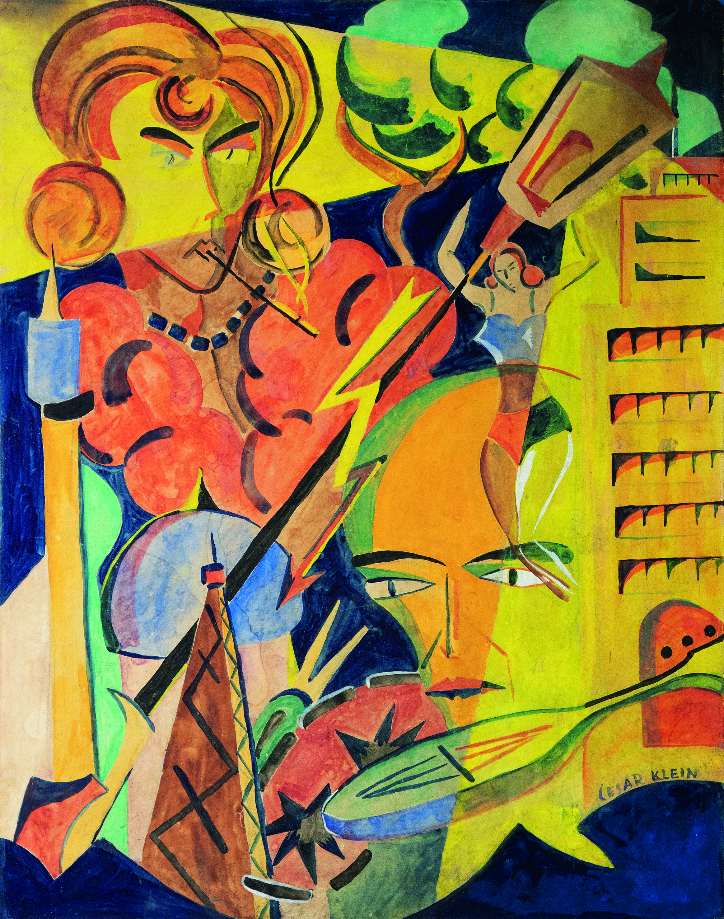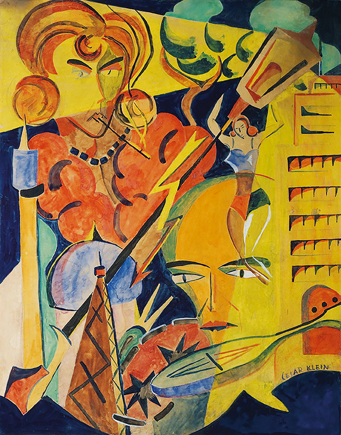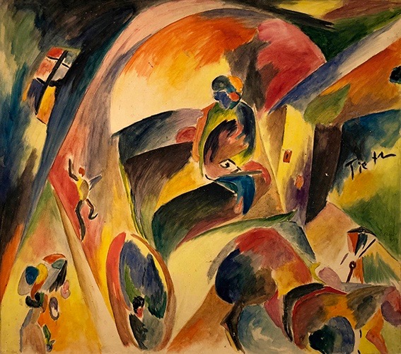 Das großformatige Gemälde „Berliner mit Weiße“ von Rudolf Ausleger eröffnet mit einem typischen Berlin-Motiv die Ausstellung. Das Bild, das sich bis vor kurzem noch in den USA befand, entstand 1925, vier Jahre nach dem Beitritt des Künstlers zur Novembergruppe. Ausleger war bis 1931 an nahezu jeder Ausstellung der Novembergruppe im In- und Ausland beteiligt. Wie die Bilder fast aller Mitglieder dieser Künstlervereinigung wurden auch seine Werke während des Nationalsozialismus als „entartet“ diffamiert. Auch Curt Ehrhardt wählte 1919 mit seinem „Droschkenkutscher bei Tietz“ ein Berlin-Thema. Der Künstler kam über den Sturm-Galeristen Herwarth Walden zu den Novembristen. Seine Gouache, die stilistisch unter dem Einfluss der vom Sturm-Kreis vermittelten avantgardistischen Strömungen steht, beeindruckt durch ihre Farbenfrische sowie die fast vollständige Auflösung des gegenständlichen Motivs. Großstadtatmosphäre spiegelt auch das Aquarell aus den 1920er Jahren von Cesar Klein wider. Er gestaltete jedoch kein einzelnes, unverwechselbares Motiv, sondern verdeutlicht in seinem Aquarell prägende Zeiterscheinungen wie das neue Frauenbild, die Begeisterung für Sport und Technik sowie das moderne Bauen in einer aufs Wesentliche reduzierten, fast symbolhaften Art und Weise. Das künstlerisches Interesse des Novembristen Richard Ziegler galt vor allem den Menschen der Großstadt, dem Zirkus und dem Kabarett. Ende der 1920er Jahre entstand eine Serie von Pastellen, die – frei von moralischem Urteil und oft mit einer Prise Humor – weibliche Erotik und Glamour effektreich in Szene setzt. In der Ausstellung ist aus dieser Zeit u.a. sein „Mädchen mit grauer Pelzkappe und grauem Pelzkragen“ zu sehen.
